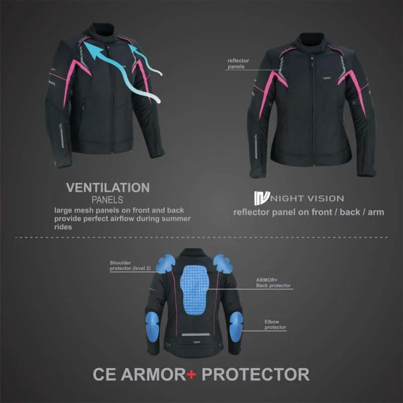 LADY ORION Motorcycle Women Textile Jacket, All-Season and all Weather Riding Jacket.